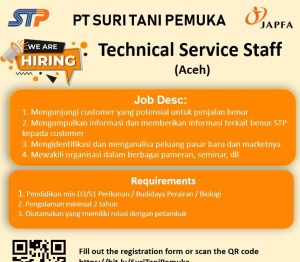 Job Vacancies Technical Service Staff PT. Suri Tani Pemuka